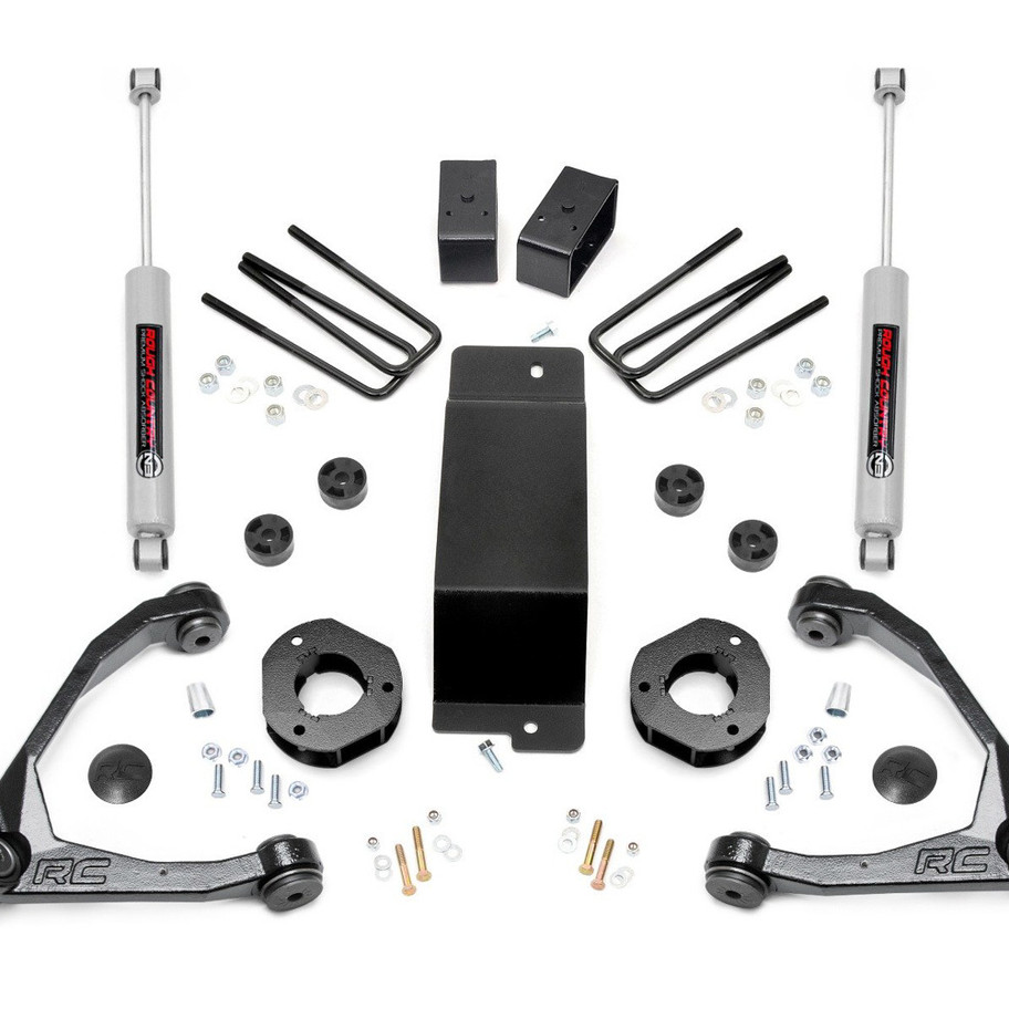 Suspension Lift Kit - 3-1/2 in Lift - Blocks / Hardware / Shocks / Skid Plate / Upper Control Arm - GM Fullsize Truck 2007-16 - Kit