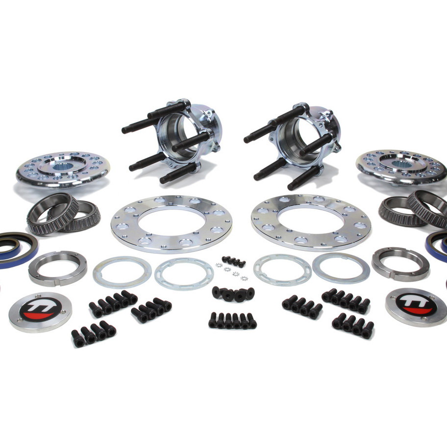 Wheel Hub - Grand National Hub Package - Rear - 5 x 5.00 Wheel - 24 Spline Drive Flange - Bearings / Hardware / Seal / Plate / Rotor Adapter / Studs Included - Steel - Zinc Plated - Pair