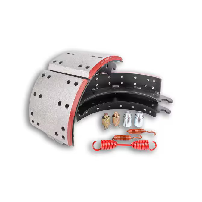 Keeping you Ready for the Road Ahead, the HD Value Standard Brake Shoe Kit not only meets, but also exceeds all FMVSS121 brake standard requirements for 23K Gross Axle Weight Rating (GAWR) axles (165 AL Factor). The brake shoe kit has optimal drum compatibility, which significantly reduces downtime and maintenance. Prevent distortion in heavy braking applications with heat-treated roller and anchor journals. This new, no core brake shoe replacement kit is the ideal match for both on- and off-highway driving of your semi truck.