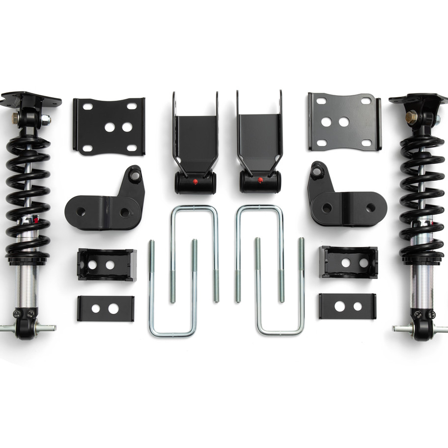 Lowering Kit - 3 in Front / 5.5 in Rear - Double Adjustable - Shocks / Struts / Shackles / Brackets / Hardware - 4WD - Ford Fullsize Truck 2015-20 - Kit